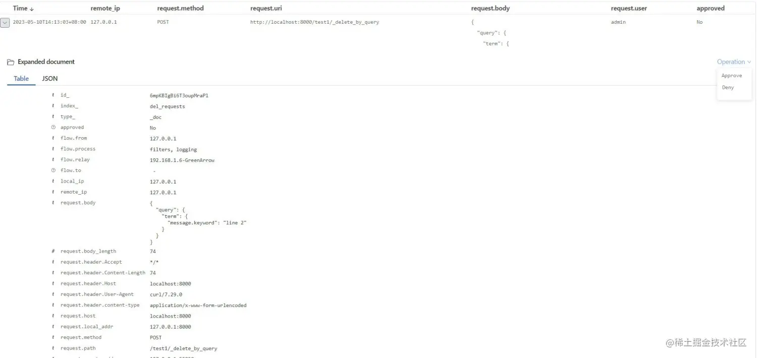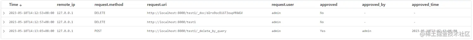 其实我们可以把“删除数据”这个操作管理起来。当 ES 集群接收到删除数据命令的时候,先不执行该命令,而是生成一条删除数据的记录,经过管理人员批准后,该命令才会执行。这样不仅可以管理数据的删除,还可以进行删除操作的追踪:什么人,什么时间,发送了什么样的删除指令,从哪个 IP 发送的,以什么身份登录的等等。