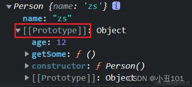 在控制台中分析打印出的上面的代码:最外层的对象是 Person.prototype