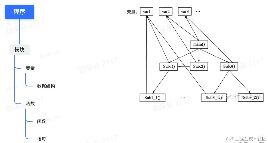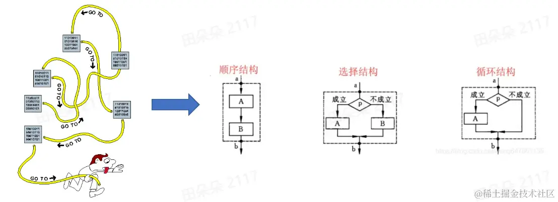 - 代码和数据分离倡导结构化编程