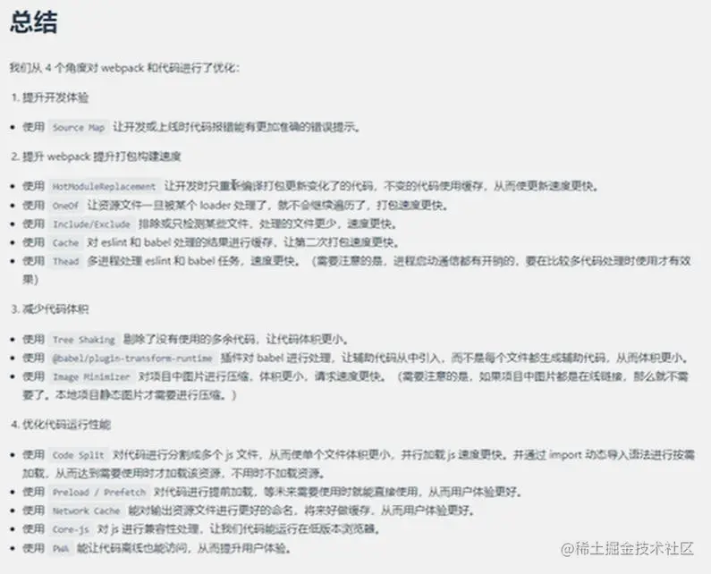 对webpack优化, 代码在编译时、运行时性能更好 => 提升开发体验, 提升打包构建速度, 减少代码体积, 优化待代码运行性能