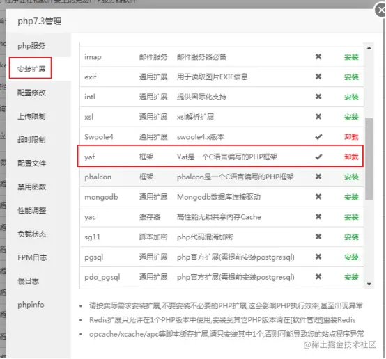 宝塔中的使用的PHP安装yaf扩展,重启PHP后访问查看phpinfo()可能找不到yaf