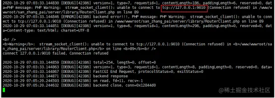 启动的config.lua出现“stream_socket_client(): unable to connect to tcp://127.0.0.1:9010”时,修改server的“config”中的router,IP和端口换成router.lua中配置启动的地址和端口。