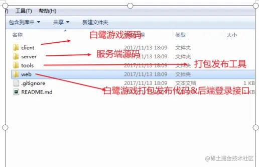 下载完源码地址的源码,解压得到以下四个目录,分别的用途见标注。