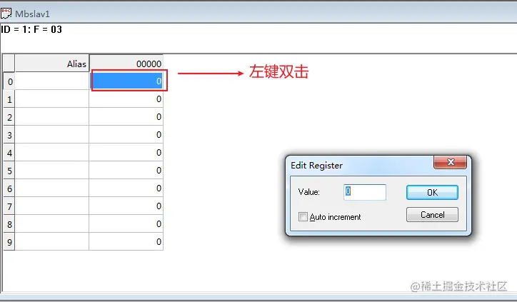 参数1:unitId, modbus设备ID,参考slave的slave ID