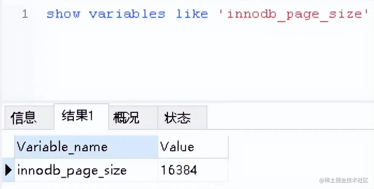 可以通过查询语句进行查看:show variables like 'innodb_page_size'
