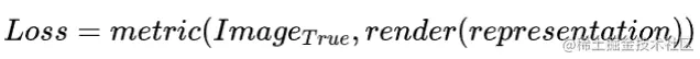 对于NeRF重建的思想与几何重建思想有何不同,我们需要明确的是,NeRF属于可微渲染领域中的一个方法,这类方法的思路可以概括为,通过某种表达(可以是点云、mesh、图元、神经网络等)经过可微的渲染途径得到渲染图像;将渲染图像与真实图像作差得到loss;再通过梯度反向传播以修正表达,最终得到几何一致的三维表达与photo-realistic的渲染图像: