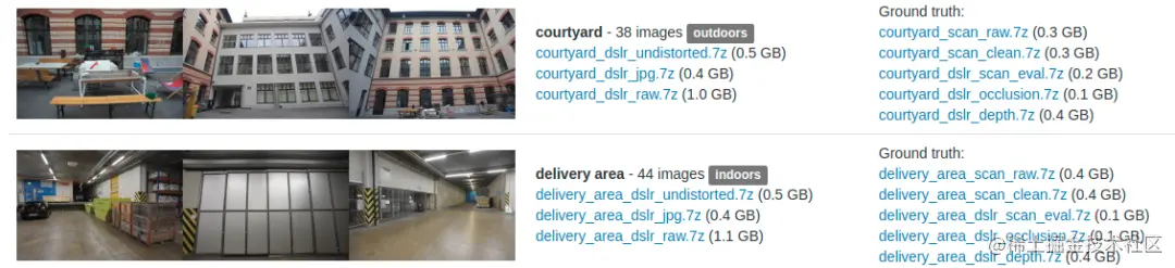 ETH3D数据集由多个不同的子数据集组成,包括建筑物、自然景观、室内场景、工业和机械场景等。每个子数据集都包含多个相机拍摄的图像序列,以及每个图像的相机参数和相对姿态信息。ETH3D还提供了一个在线评估平台,用于评估不同三维重建算法的性能。也是三维重建领域最具有挑战性的一个数据集