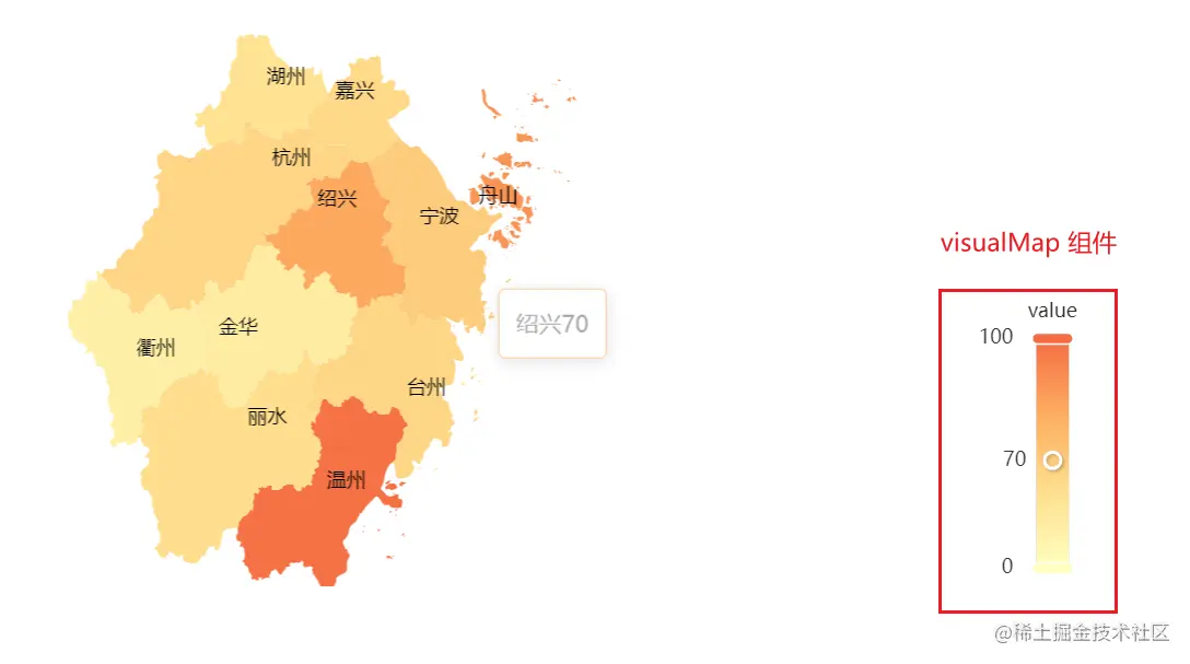 visualMap:视觉映射组件,用于映射地区对应数值的颜色