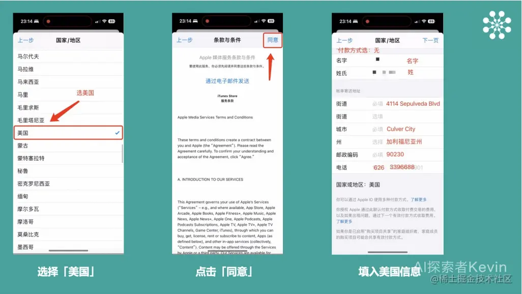 选择美国,点击同意,输入如下信息: