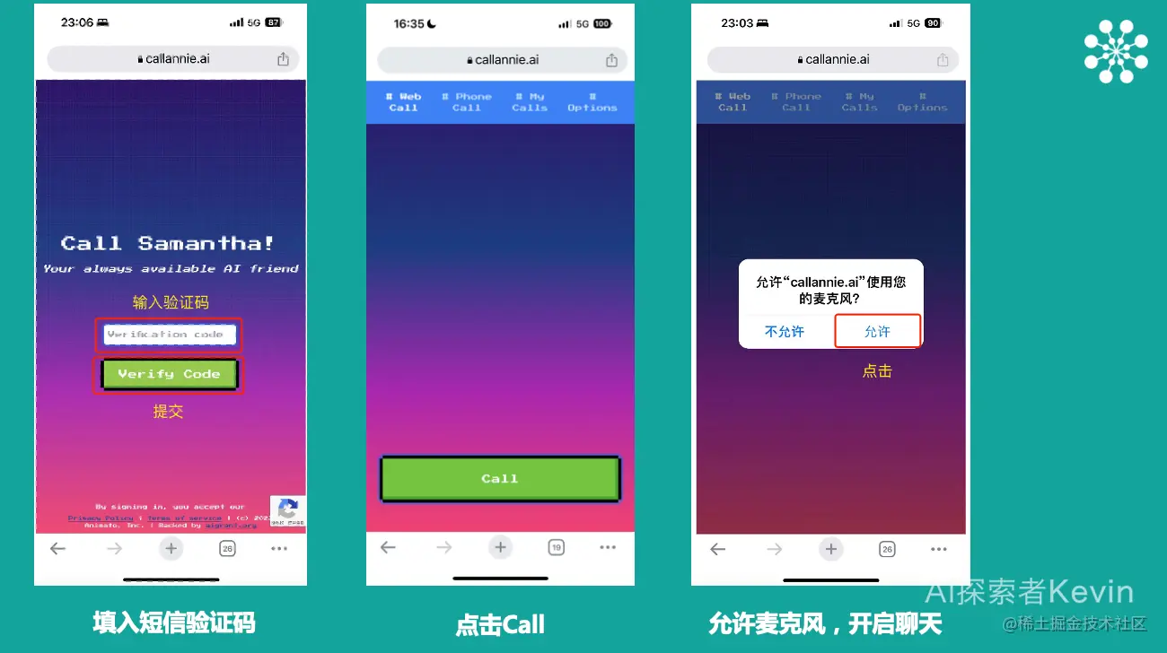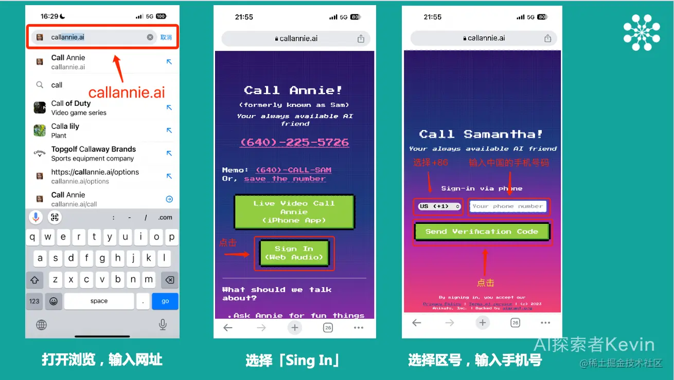 打开手机浏览器,输入网址:callannie.ai/
