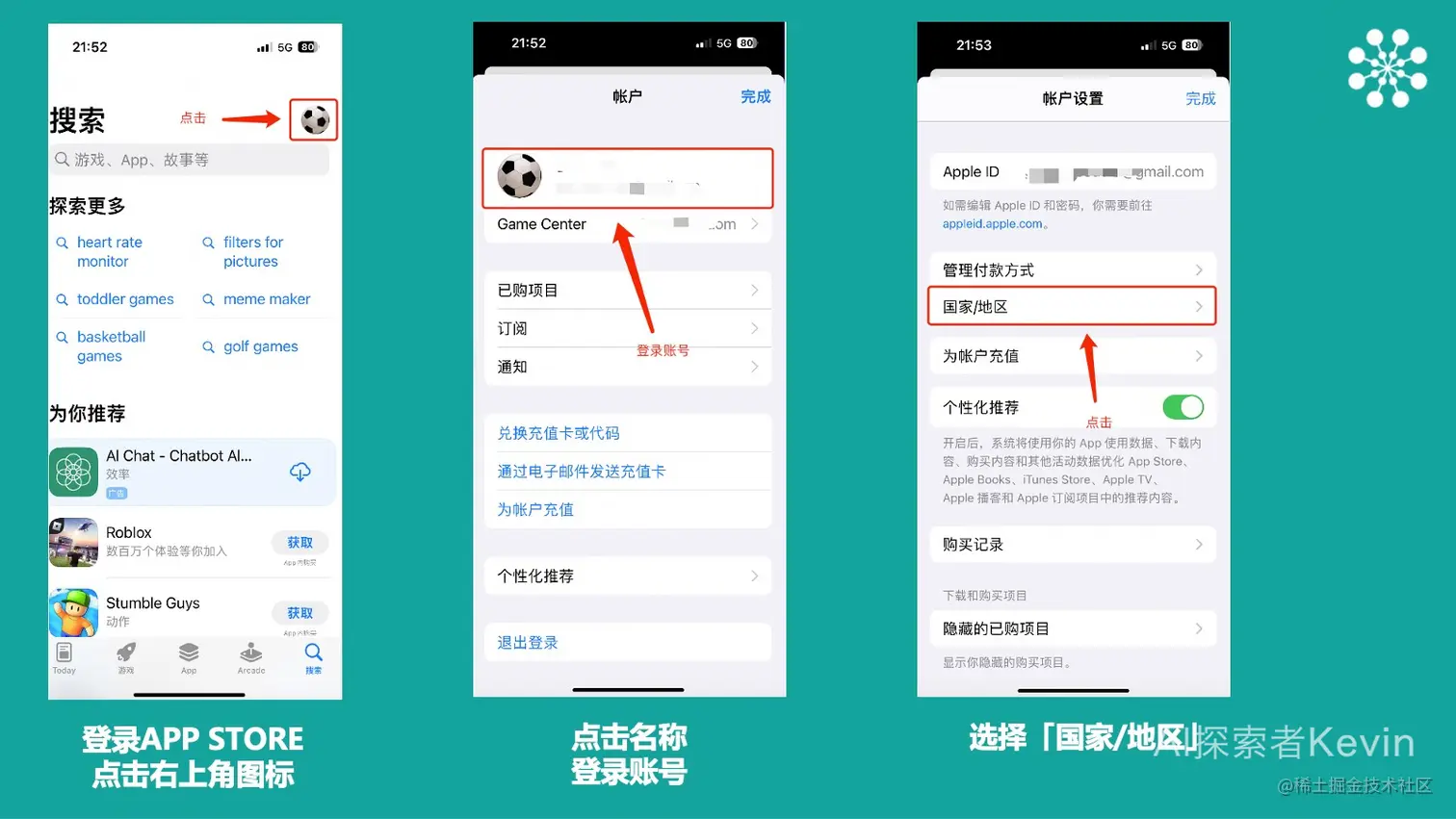 登录App store,登录账号,进入国家/地区修改界面
