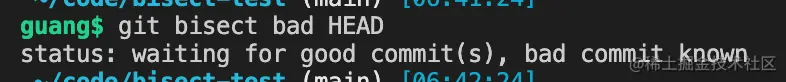 提示是等待指定 bad 和 good 的 commit。