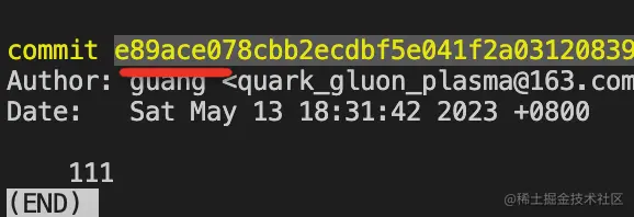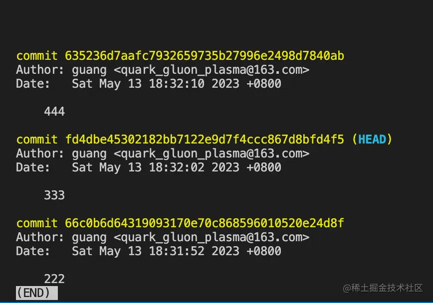 这时候 git log 可以看到已经切换到 444 的 commit。