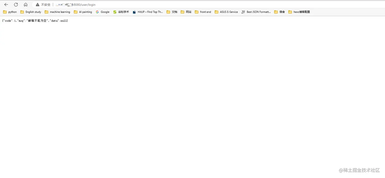 打开浏览器,我们随便测试一个API, 输入 IP:后端部署端口/你的后端的任意API路径: