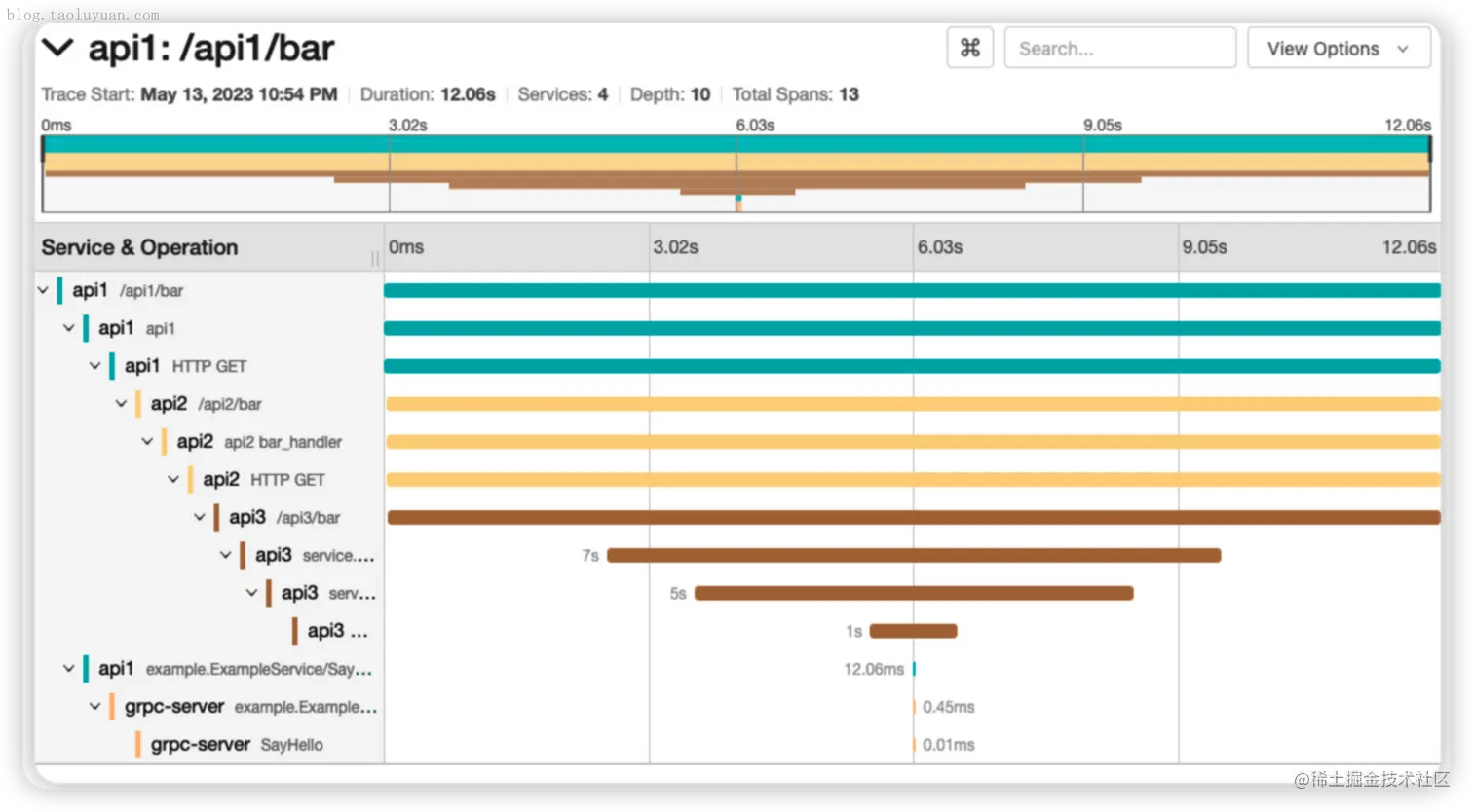 我的 golang 服务 业务代码会互相调用,启动后 调用一个接口,就会在 jaeger 生成完整链路追踪