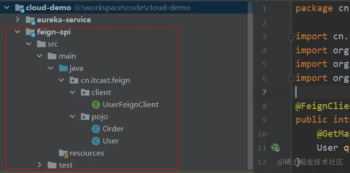 然后,order-service中编写的UserClient、User、DefaultFeignConfiguration都复制到feign-api项目中