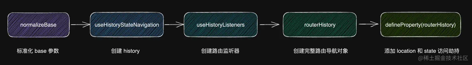 createWebHistory 方法实现主要分为 5 步,我们先看整体方法示意图,再具体介绍每一步实现