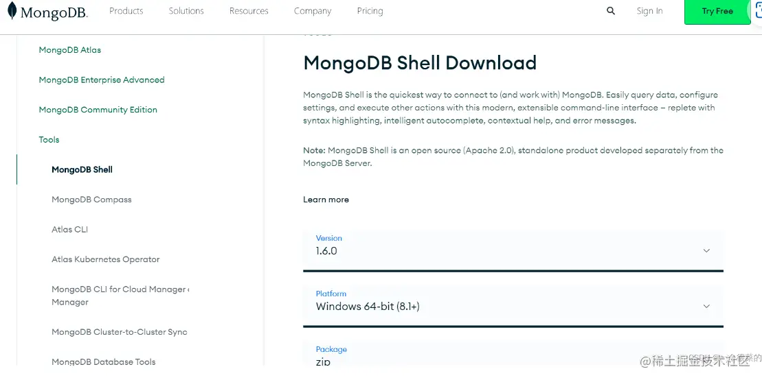 下载地址 MongoDB Shell Download,直接点击下载即可