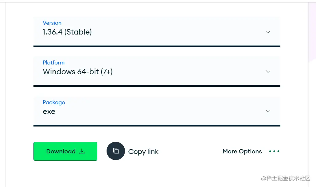 版本选择最新就行,都是6.0以上的版本下载的方式都是一样的,package选择msi,点击download
