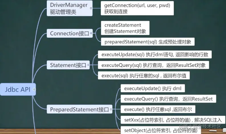 JDBC API是一系列的接口,它统一和规范了应用程序与数据库的连接、执行SQL语句,并到得到返回结果等各类操作,相关类和接口在java.sql与javax.sql包中