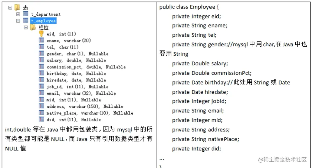 表 和 JavaBean 的类型映射关系