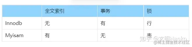 - innodb不支持全文索引、myisam支持全文索引,查询性能较快