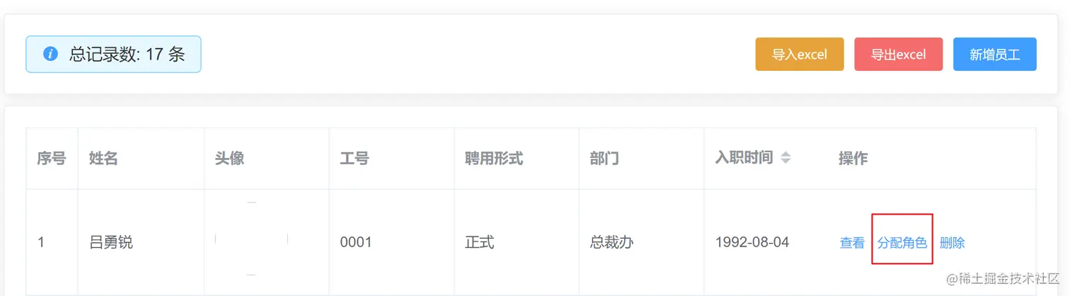 src/views/employees/components/assignRoleDialog.vue中==其实这一步已经在上面埋伏好了==