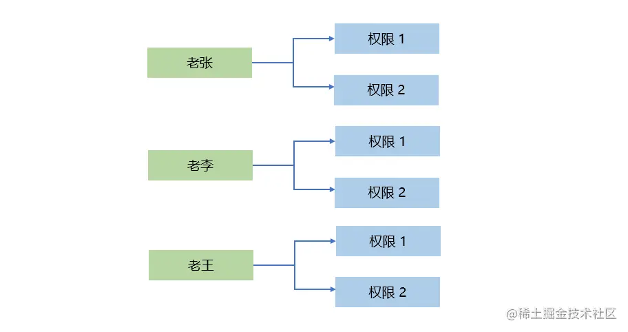 从上面的图中,我们发现,传统的权限设计是对每个人进行单独的权限设置,