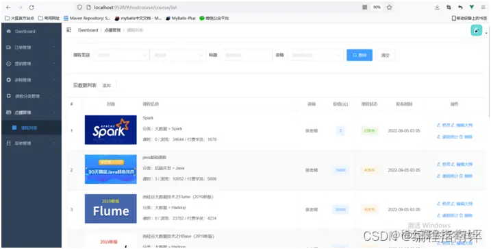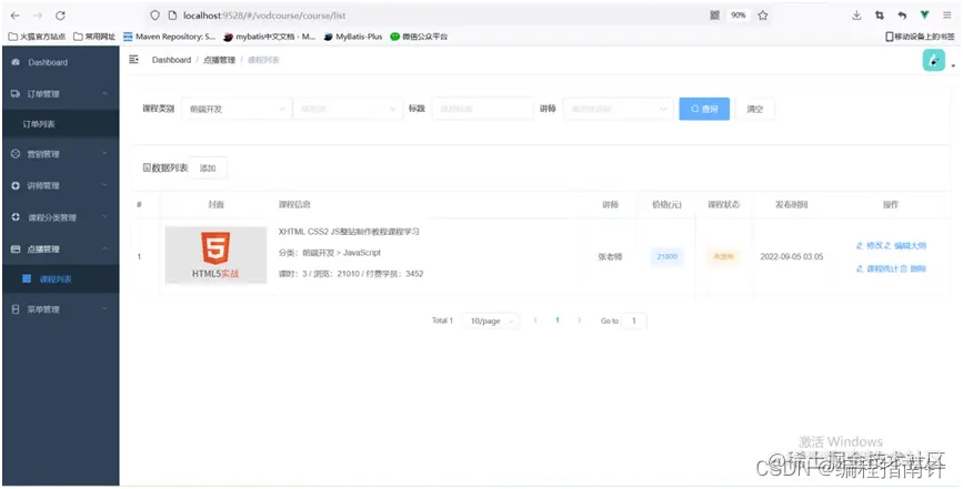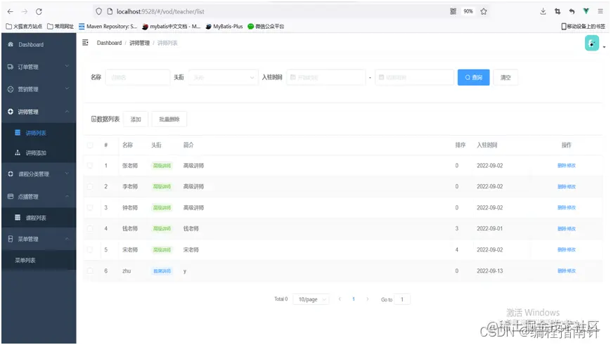 3.实现了讲师管理、点播课程管理、在线点播课程、公众号菜单管理、公众号消息等功能。