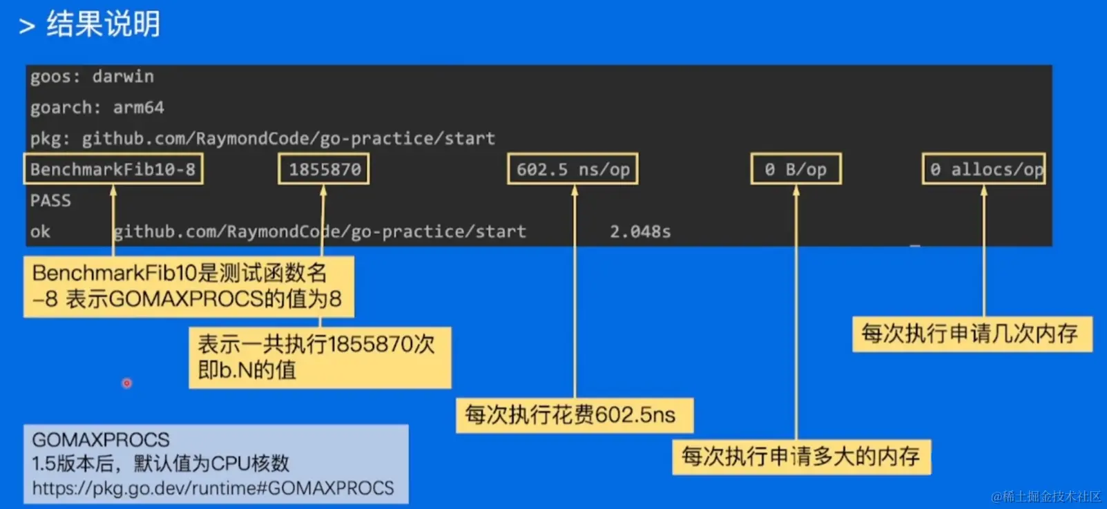 性能表现需要实际数据衡量,go语言提供了支持基准性能测试的beanchmark工具