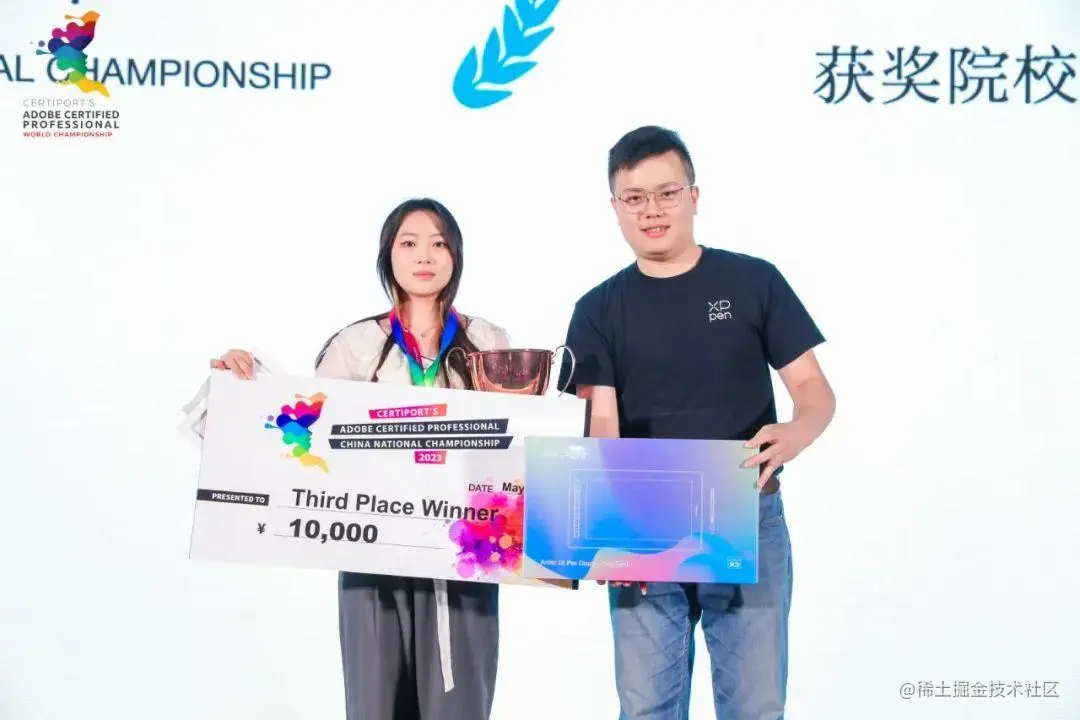 此次2023ACP世界大赛中国区总决赛历经2个多月的激烈竞争,经过层层筛选,聚集了来自27 个省份,68个城市的晋级选手来到这场属于青年创意者的决赛场,最终由来自青岛黄海学院的刘文硕同学脱颖而出,夺得桂冠,亚军由山西新华电脑学院的姜贝冉同学获得,季军是云南林业职业技术学院的刘嘉云同学。