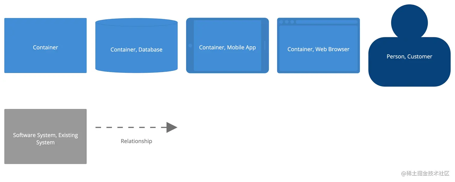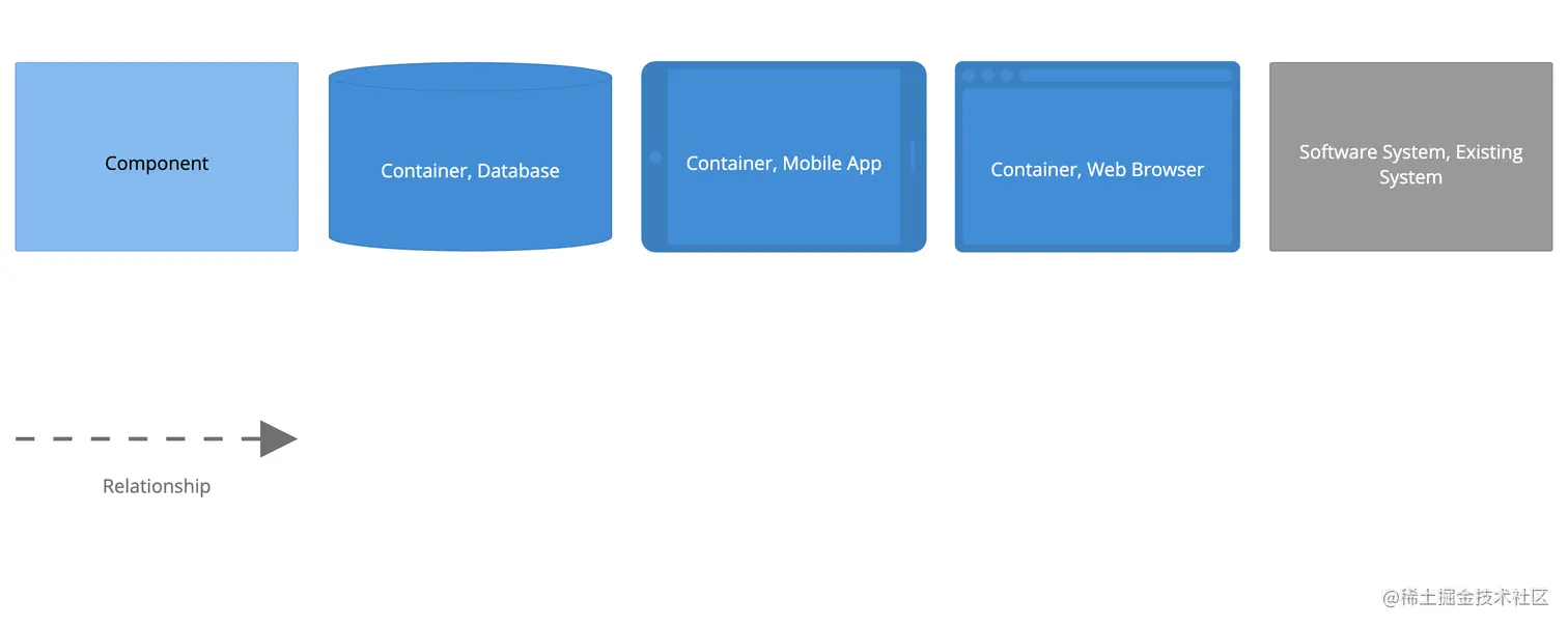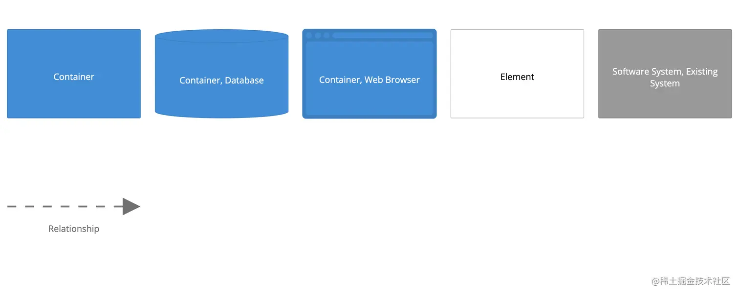 该容器图的图例如下,主要是引入了数据库、APP、浏览器的图例。