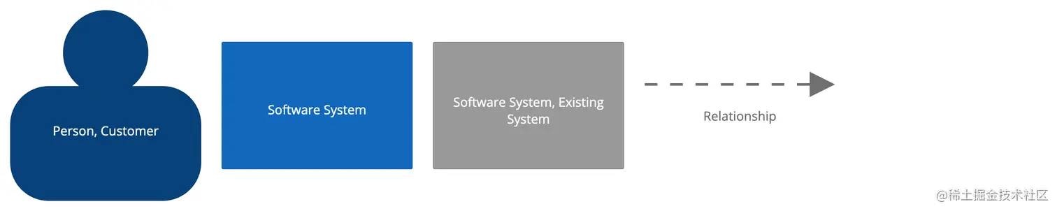 支持元素:在范围内直接与主要元素中的软件系统有关联的人员(例如用户、参与者、角色或角色)和外部依赖系统。通常,这些外部依赖系统位于我们自己的软件系统边界之外。