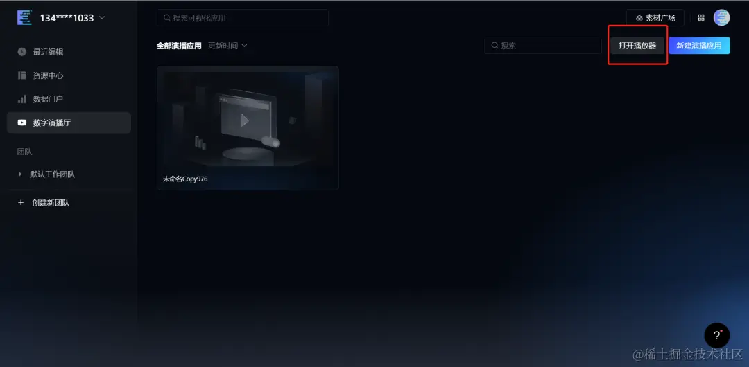 2.将可视化应用发布至演播厅后,即可在演播编辑页面中添加该应用为演播素材