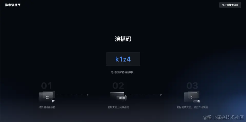 4.打开演播播放器,获取演播码,将其输入对应的投屏页面即可开始演播