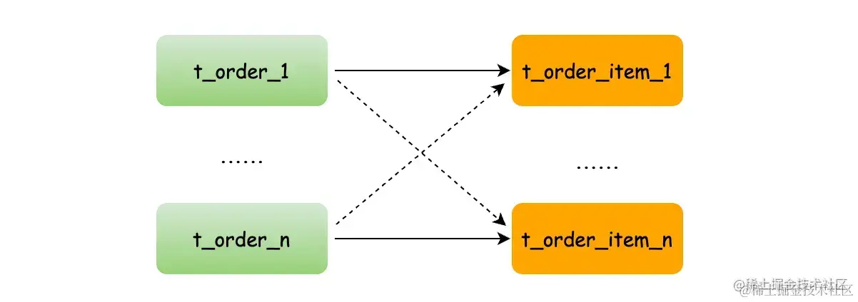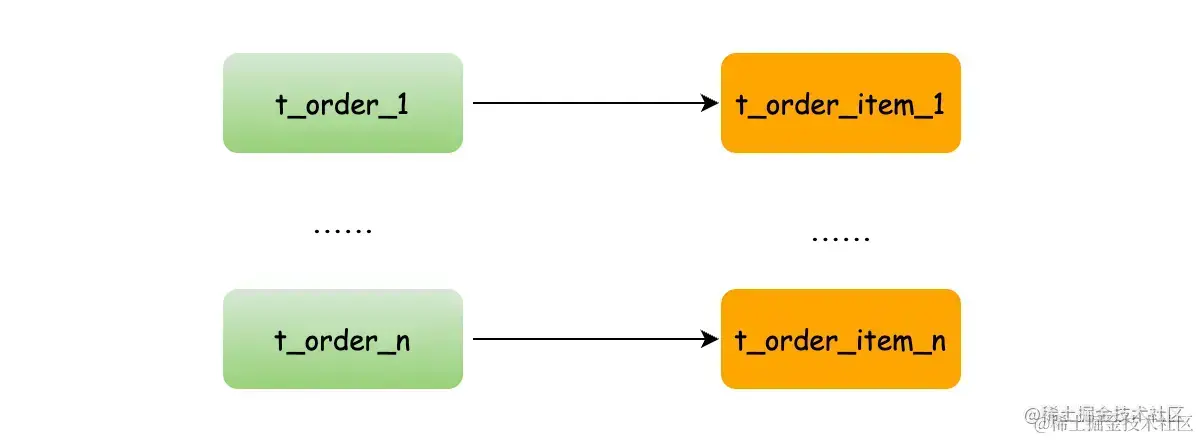 比如:t_order 订单表和 t_order_item 订单项目表,都以 order_no 字段作为分片键,并且使用 order_no 进行关联,因此两张表互为绑定表关系。