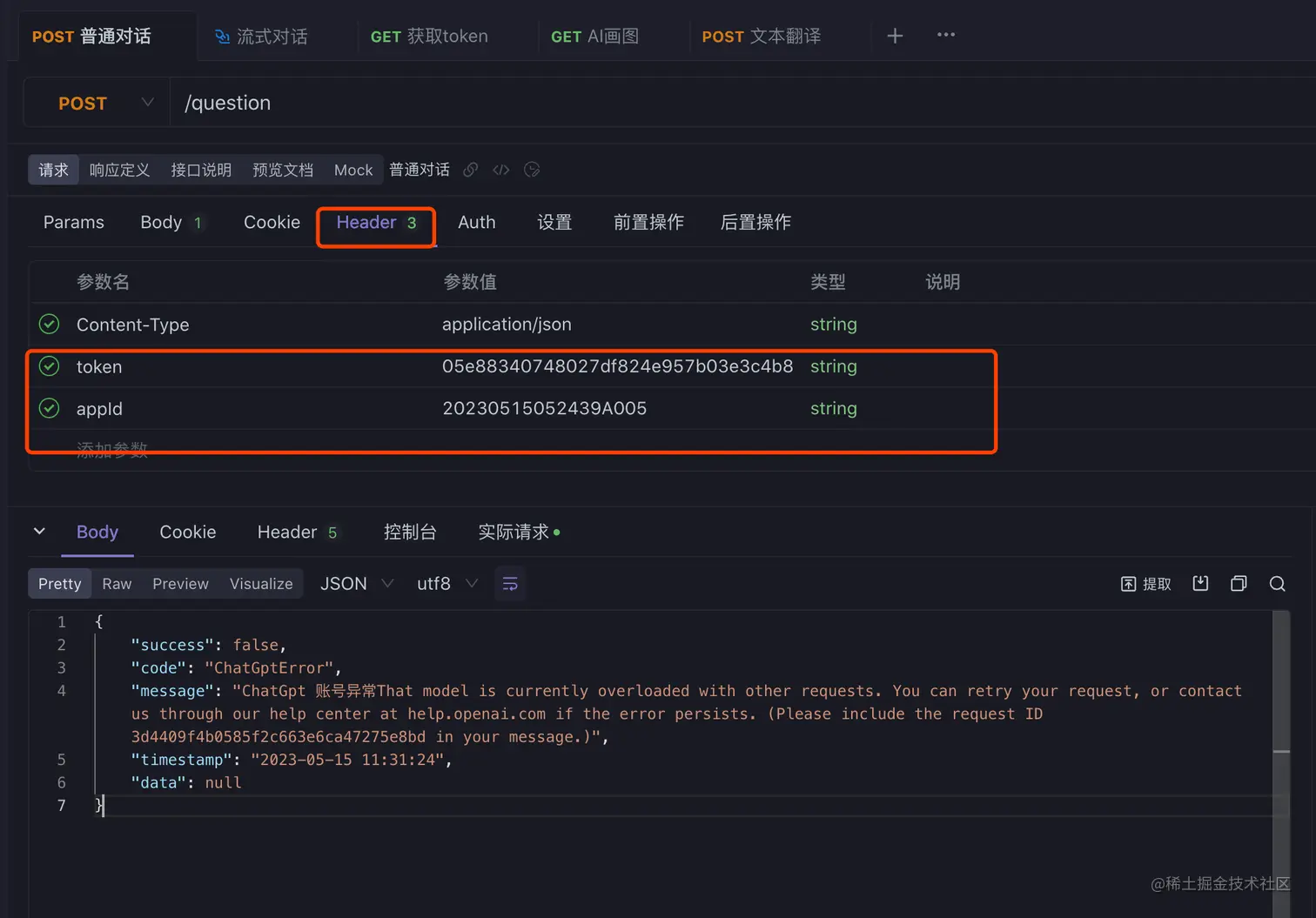 然后其在调用其他接口时候,在header里面添加上对应的 token,和对应的appid就行了。