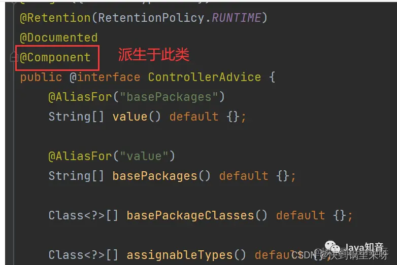 可以看到 @ControllerAdvice 派生于 @Component 组件而所有组件初始化都会调用 InitializingBean 接口