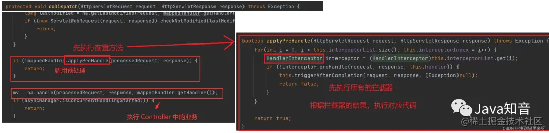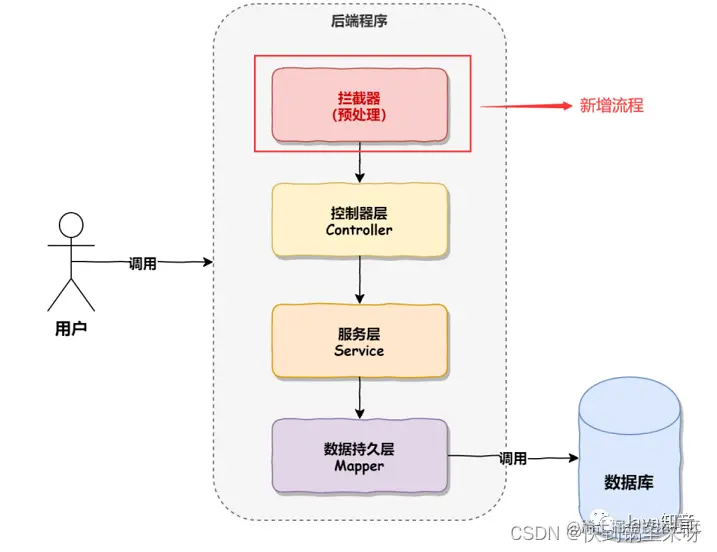 有了拦截器之后,会在调⽤ Controller 之前进⾏相应的业务处理,执⾏的流程如下图所示