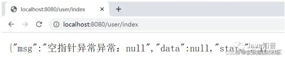 result.put("msg" , "空指针异常异常:"+ e.getMessage());