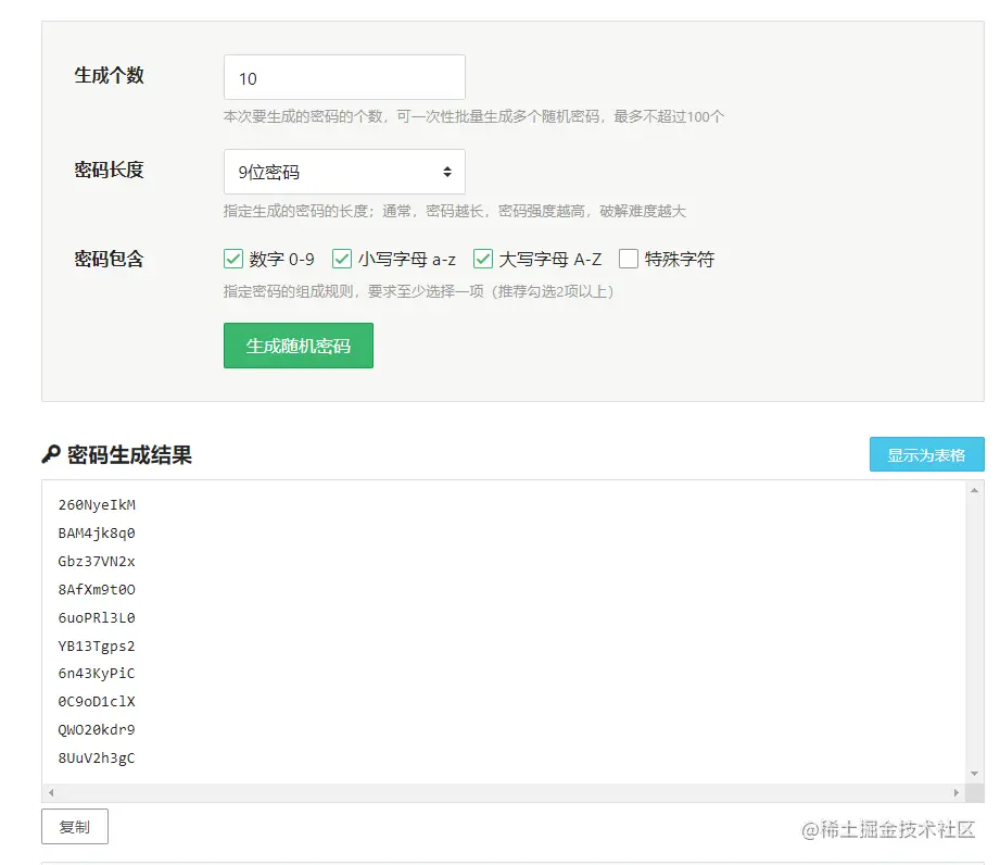 直接用在线生成工具即可,这里推荐一个网站:www.dute.org/password-ge…