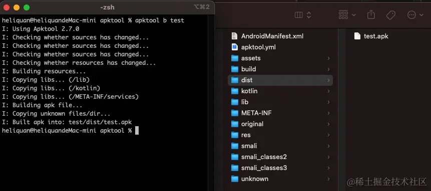 接着通过 apktool b [apktool 解包目录名称] 进行回包操作: