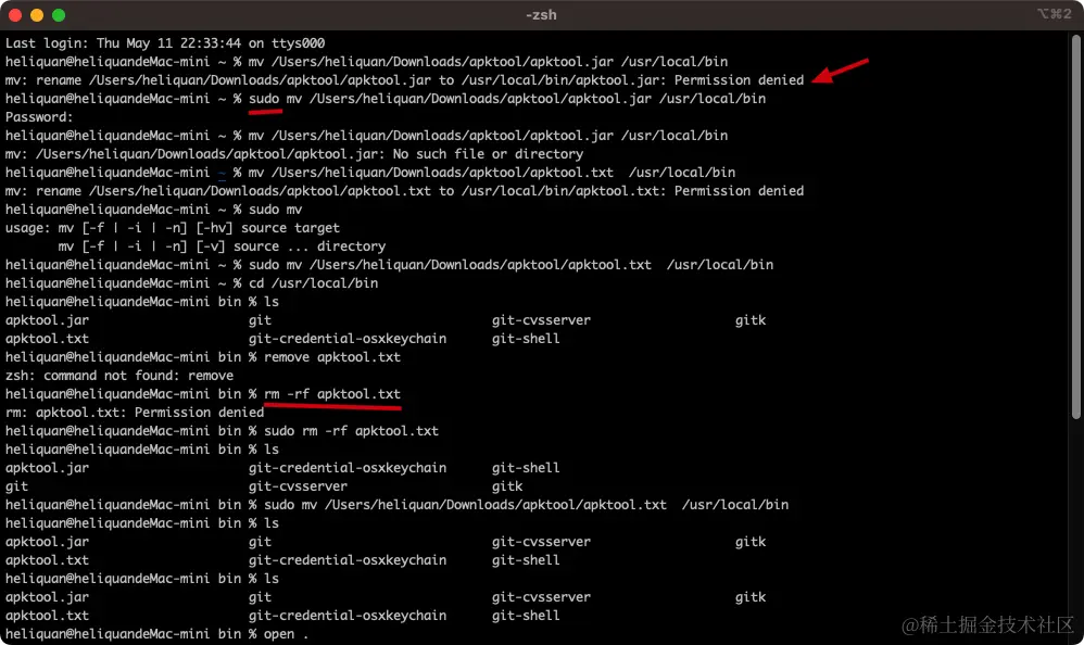 另外,遇到的一个问题就是在 mac OS 中将文件后缀修改了,但是移动到目标目录里面,通过 ls 查看后续依然没变,所以为了省事儿,还是直接将下载的两个文件直接移动到 /usr/local/bin 目录中,然后继续通过 sudo mv 进行对应的修改更方便吧。