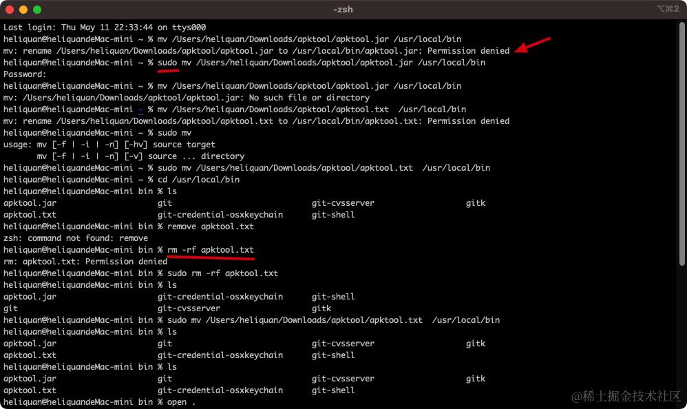 其实这里遇到的都是权限导致的一些问题,如果是新电脑的话,建议直接是 sudo 大法走起。