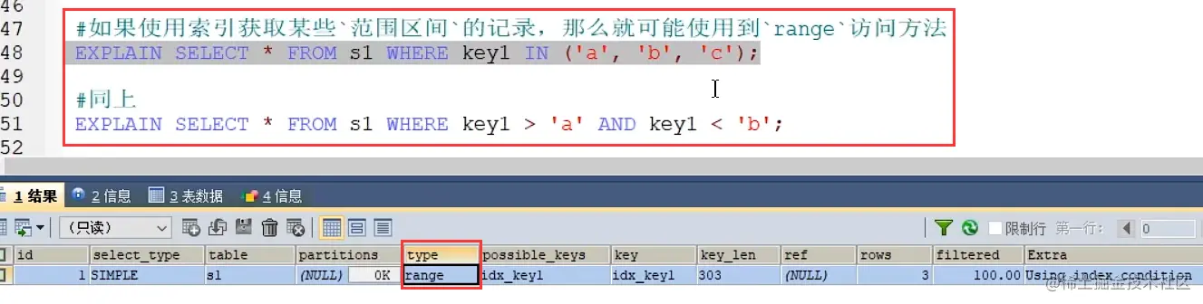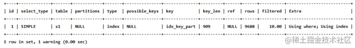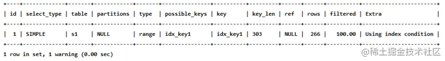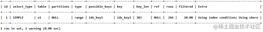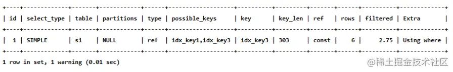 mysql> EXPLAIN SELECT * FROM s1 WHERE key1 > 'z' AND key3 = 'a';