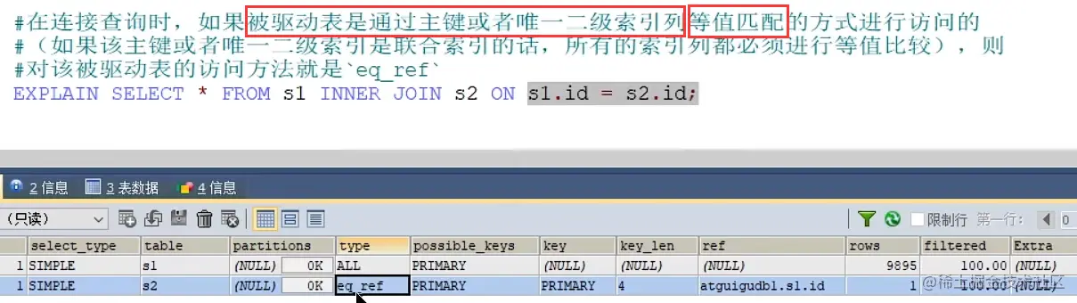 eq_ref (唯一索引、等值匹配、多表)