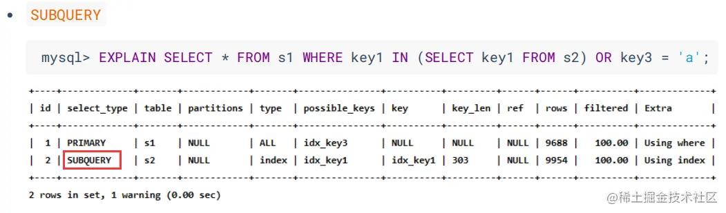 为了让大家有比较好的体验,我们调整了下 EXPLAIN 输出列的顺序。