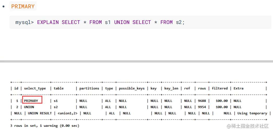 PRIMARY、UNION