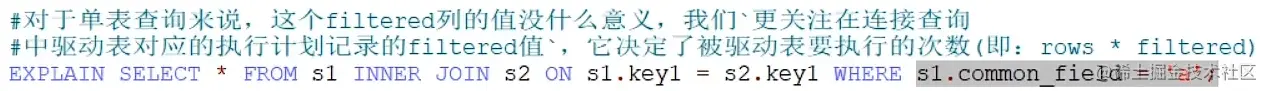 如果我们想看看某个查询的执行计划的话,可以在具体的查询语句前边加一个 EXPLAIN ,就像这样: