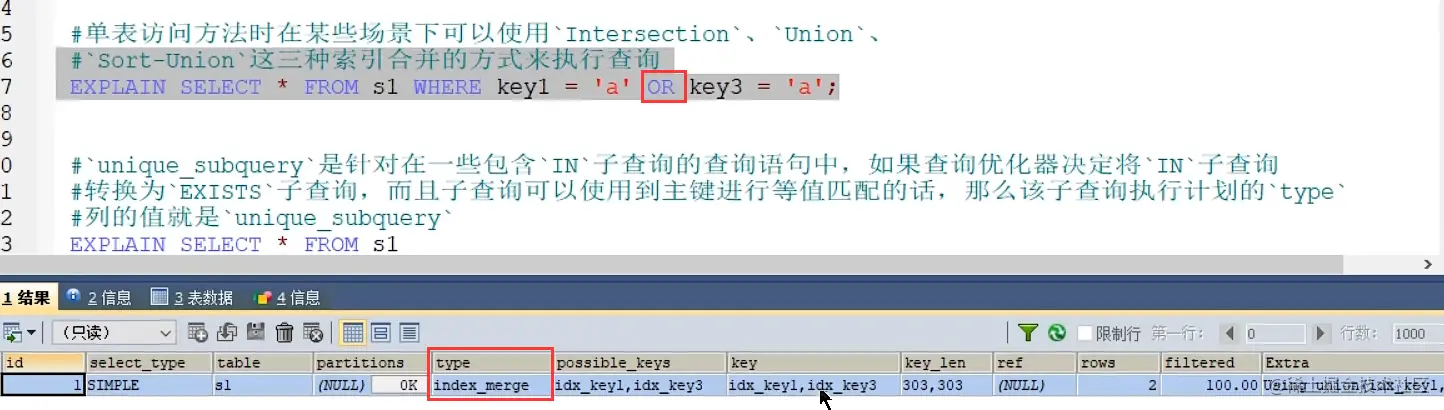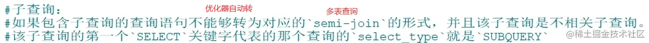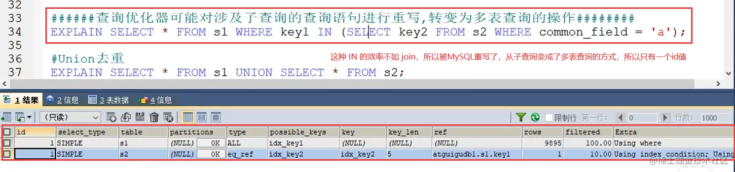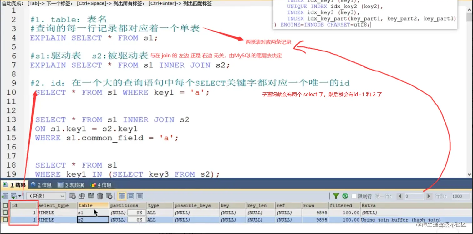 - 关注点: id号每个号码,表示一趟独立的查询, 一个sql的查询趟数越少越好
